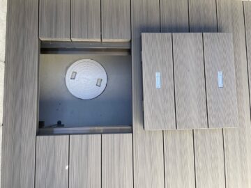 樹脂でつくられた人工的な木材を使用したウッドデッキです。