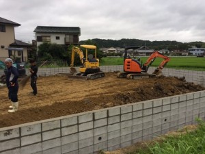 愛知県一宮市の駐車場・アプローチの外構工事現場です![]()
