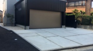 駐車場のコンクリート部分をランダムな四角でうまく組み合わせて、個性的に仕上げましたaicon_220.gif