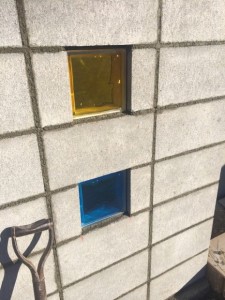 黄色と青のガラスも組合せ、どのような門塀になるか楽しみですねΣd(≧∀≦*)